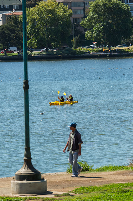 Anyway, the one lone egret fishing in the same spot he's been fishing in since I can remember. Could be a she, I have no idea. A bit overexposed, not the best sharpness, maybe should have tried something smaller than f/5.6 when taking the picture, another photograph, still out of focus, of the two brown pelicans sitting where they too have been sitting for this last whatever. Pretty exciting for a short walk along the lake, don't you think?