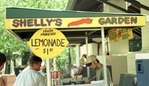 Little kiosks selling stuff with just an edge of upscale. Aluminum and glass