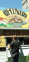 Hot dog stands, but more. Hot dogs flown in from New York. Mexican fast food,