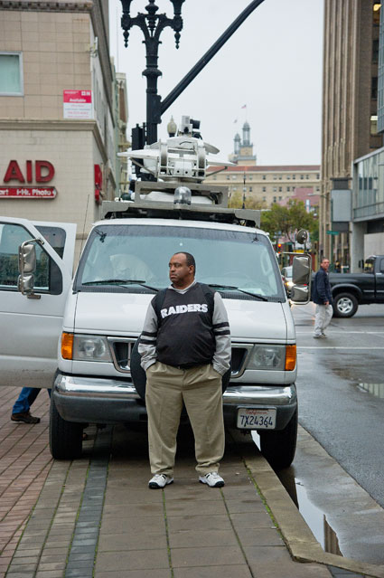 After Occupy. A walk down to the bus stop at the bottom of the hill, the bus not coming. A good excuse not to go downtown. It's already been a long day was the thinking, this no bus arrival is a good excuse. Go back to the apartment, my man, take it easy, get more pictures tomorrow, see what the day after all the excitement looks like with fewer competing photographers about.