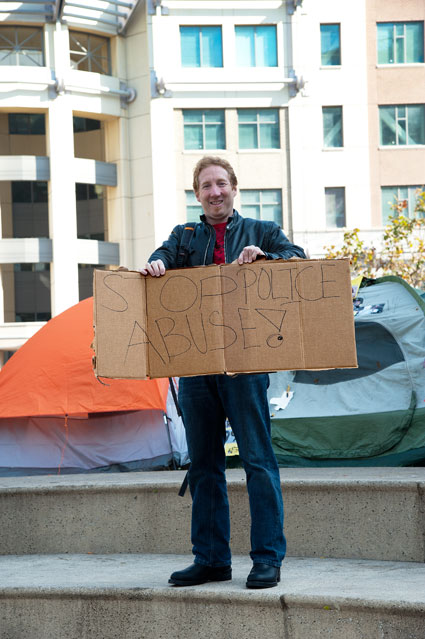 Evening. Another section up on artandlife. I'm not happy with my performance. Some of the photographs of the tents are included because I want a day by day record of what the area looked like, where the tents were located, how the population was changing. And it does change daily. Similarly with the signs. They're interesting and they change daily, I'm sure I miss some because they come and go within a single day, but they're not photographs you'd necessarily think to put up on a wall. I'm interested in this - the signs, the attitude, the message - but not as interested as the faces. But I can do better. We'll see how maybe later.