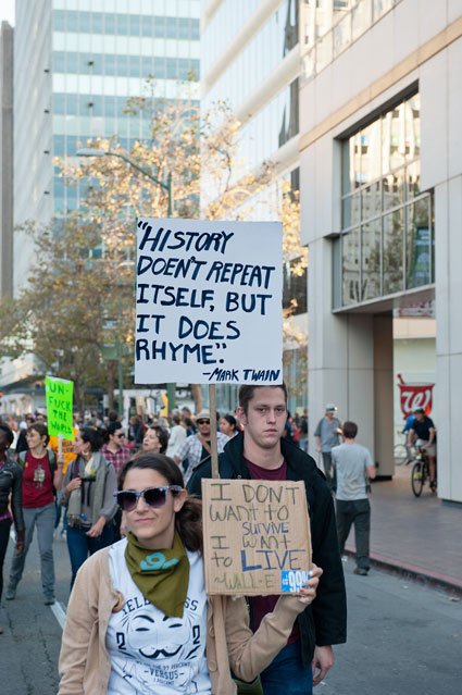 So the day begins, the weekend begins, the sun is out, and the Occupy Wall Street people are planning a march at two this afternoon from City Hall to a small fenced in lot at 19th and Telegraph to set up another camp. I suspect the possibility of turmoil if they carry it off.