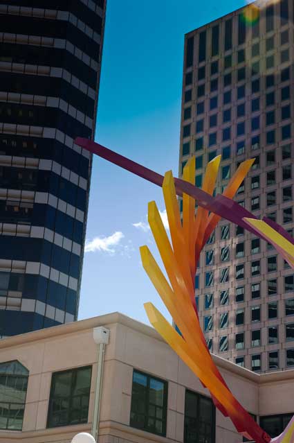 Still, a walk by the construction crew digging up Grand, a walk by the park across from the Grand Lake theater, taking a quick photo when I saw the guy laid out under the sun taking a nap. A walk back to the same park to sit for a bit after getting a Gelato across the street, briefly noting a big three hundred pound guy sitting on the bus stop shelter bench. You can see the shelter and the bench he was sitting on in the photograph, the bench in the foreground next to the chair in which I was sitting. He got up, walked by me muttering he couldn't handle having someone sitting behind him and took a seat in the park some fifty yards farther on.