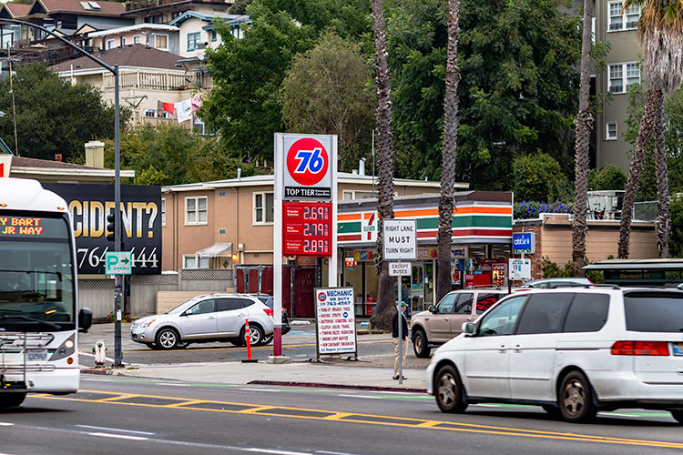 August 25th gas prices this morning in Oakland.