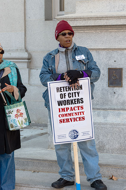 Finished and walked by City Hall and on to where the demonstrators were gathered to have lunch and so more pictures before heading on to the construction site at 17th and Broadway and then a free bus to Grand. The NextBus app said fourteen minutes before a return bus would arrive and so over to the apartment house construction site near Webster to take another set of pictures. I'd seen the crane pumping cement on the way downtown and wanted to document it, returning to the stop to wait for the bus. That didn't come.