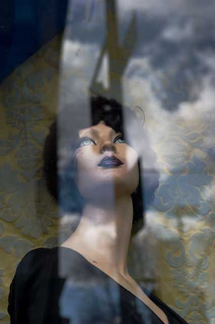 Later still. A bath. A nice hot bath and a complete change of clothes. I set out wearing a shirt, sweater and jacket and that was fine for the trip downtown, but then the sun came out as I was sitting out in front of Peet's drinking a Latte (for something like half an hour), shooting one of the same old pictures, and the sunny walk back was overly warm. Still, I did wander down the way in back of Sears, taking a picture or two of the murals they have around a vacant lot, another picture of the beauty supply store (I really like it for being so out front and in your face!), a picture through the window of a store selling wigs, another mural on another wall (I like murals on walls. I like graffiti too, if it's not too rude and destructive and even then, rude and destructive, I appreciate it if it's good.).