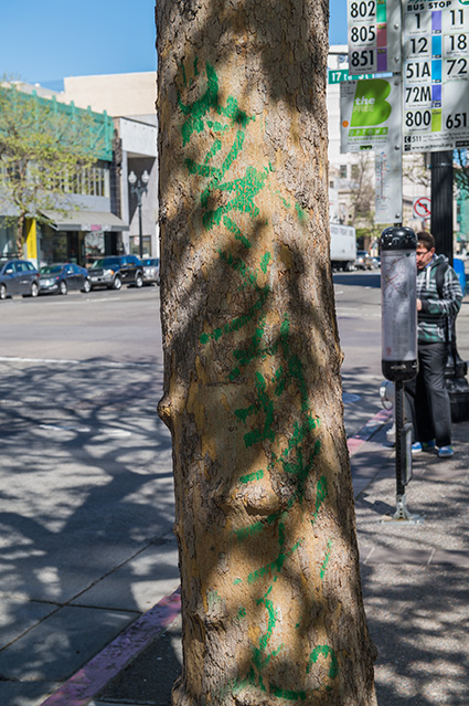 Later. Out the door in shirt sleeves, the weather really nice, detouring to photograph activity at the apartment construction site, maybe we'll see some progress soon, catching the bus downtown to get off at the ATM and walk on along Broadway to the City Center.