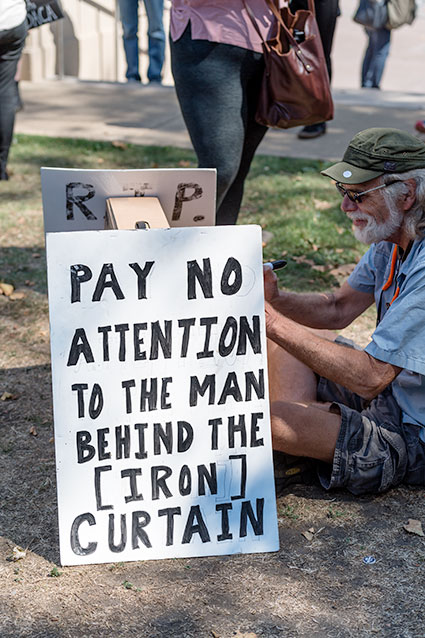 A walk then home by the construction still stumbling slowly along at Harrison and Grand, by the lake to catch the people paddling boats near the fountain and then on to the entrance to Children's Fairyland where they at least seem to be making progress. Stopped at the 7-11 look-alike for two small packages of peanuts (two for a dollar).